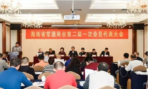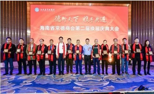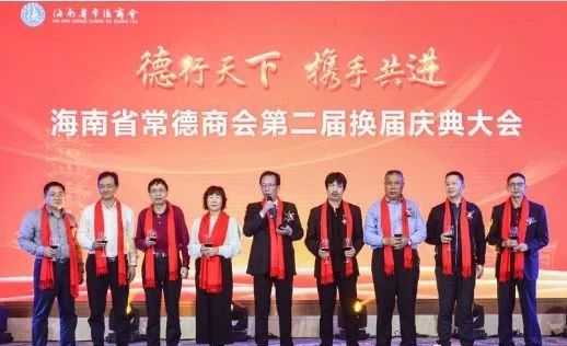 2019年1月8日下午,海南省常德商会第二届换届庆典大会在海口新埠岛诺富特酒店隆重举行。应邀出席大会的嘉宾主要包括:海南省委原书记汪啸风、海南省军区原政委、海南省委原常委刘鼎新、海南省政府原副省长辛业江、海南省武警总队原政委戴金益将军、南航部队原副司令唐一平将军;海南省商务厅原厅长彭瑞林、海南省建设厅原副厅长向多银、海口警备区原司令员彭军、海南省盐务局原党委书记、局长王凤奇、武警总队原副司令员周运彪,湖南省政府驻海南办事处陈立新处长,常德市政协副主席、市工商联主席、总商会会长张业梅、党组副书记、副主席赵晓波、副主席、德成建设集团党委书记、董事长沈洋、商协科科长徐书平,海南省民政厅党组成员、副厅长石清理、海南省工商联(总商会)副会长、海南湖南商会执行会长李建伟等。