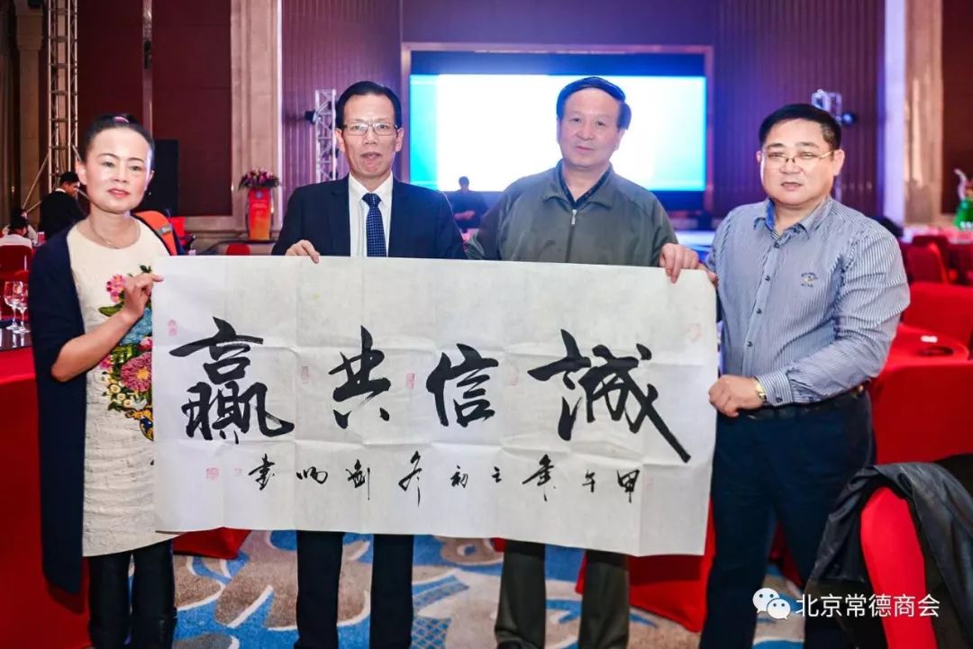 北京常德企业商会轮值常务副会长万绍英、常务副会长陈本安,副会长兼秘书长李轩,副会长孙松柏、贺杰等应邀出席了大会,并代表商会对海南常德商会新当选的曹成伟会长、王思政等执行会长、尹一冰等副会长、熊国华秘书长等当选负责人表示热烈祝贺。李卫国会长此前安排秘书处发去了贺信,万绍英常务副会长和周元法监事长(因事未能到会)还分别代表商会向海南常德商会赠送墨宝一幅,祝愿两地商会携手前行。