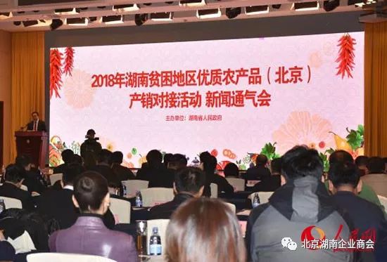 12月13日在北京湖南大厦十楼召开新闻通气会上, 湖南省人民政府副秘书长欧阳煌介绍,即将于21日在全国农展馆开幕的湖南贫困地区优质农产品产销对接活动是由湖南省人民政府主办,由湖南省农业农村厅、扶贫开发办公室和驻北京办事处承办的一项盛举,主要目的是推动湖南贫困地区优质特色农产品走向市场,助力湖南打赢打好脱贫攻坚战。